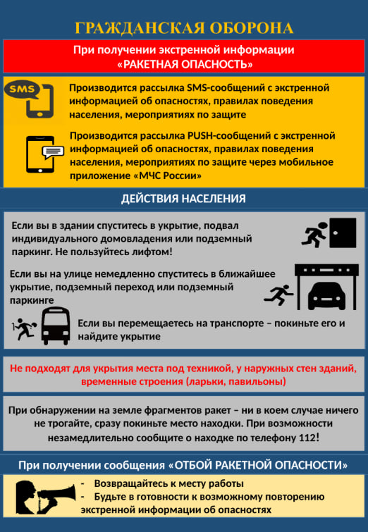 При получении экстренной информации «РАКЕТНАЯ ОПАСНОСТЬ»